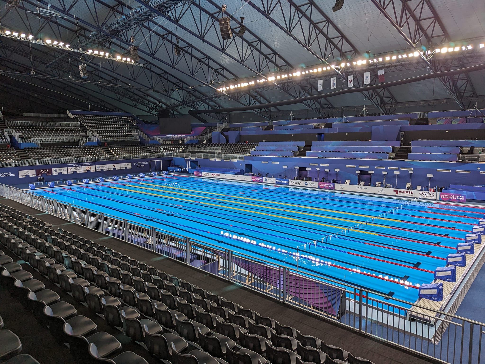 The Aspire Dome included two indoor 50-meter pools and a Water Polo facility plus an outdoor 50-meter pool a short walk from the indoor pools.